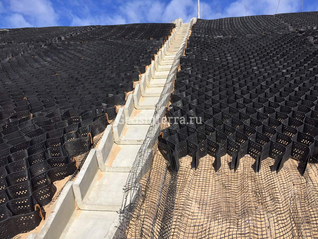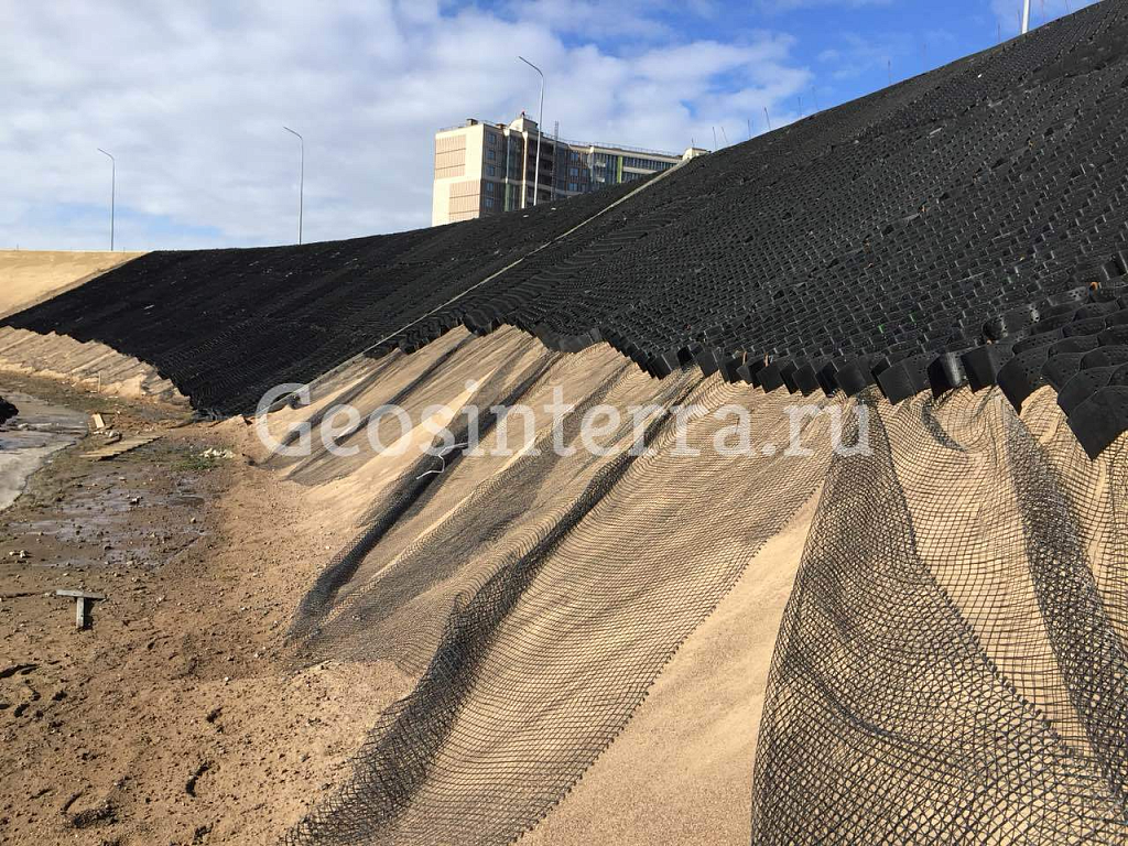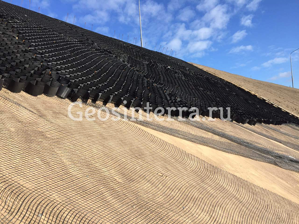 - подбор материалов, в том числе объемной георешетки для укрепления склонов;